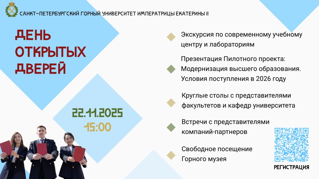 Санкт-Петербургский горный университет императрицы Екатерины II приглашает вас 22 ноября 2025 года на День открытых дверей.