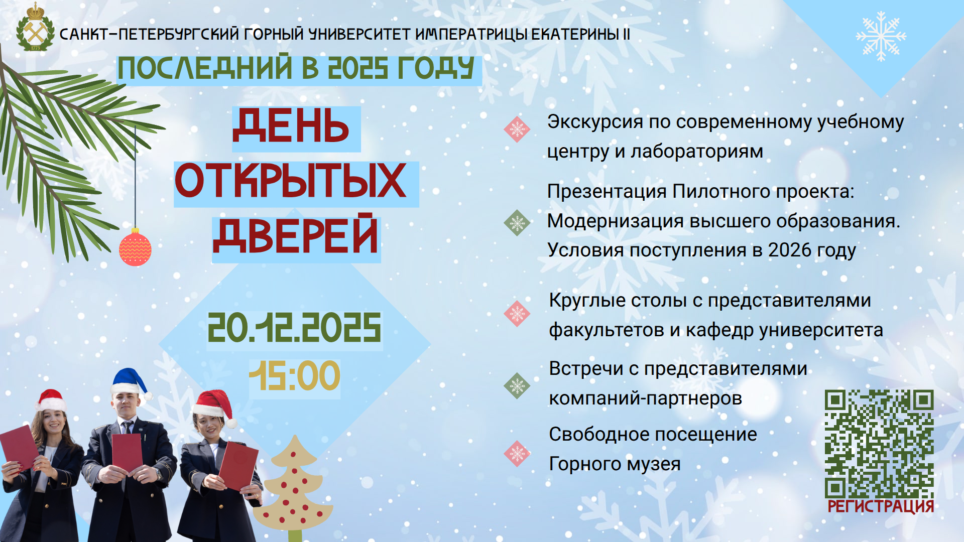 Санкт-Петербургский горный университет императрицы Екатерины II приглашает вас 20 декабря 2025 года на самый волшебный День открытых дверей в этом году.